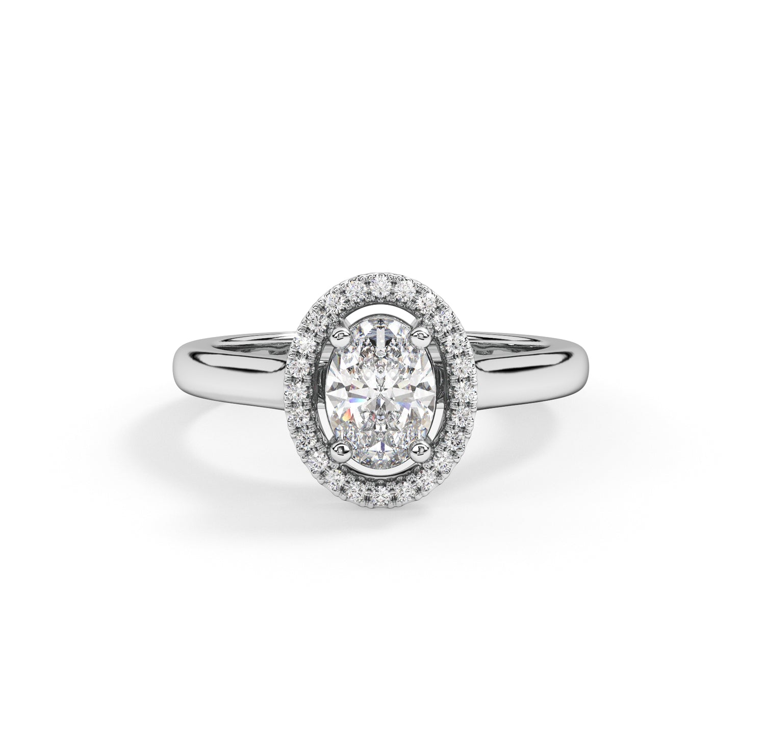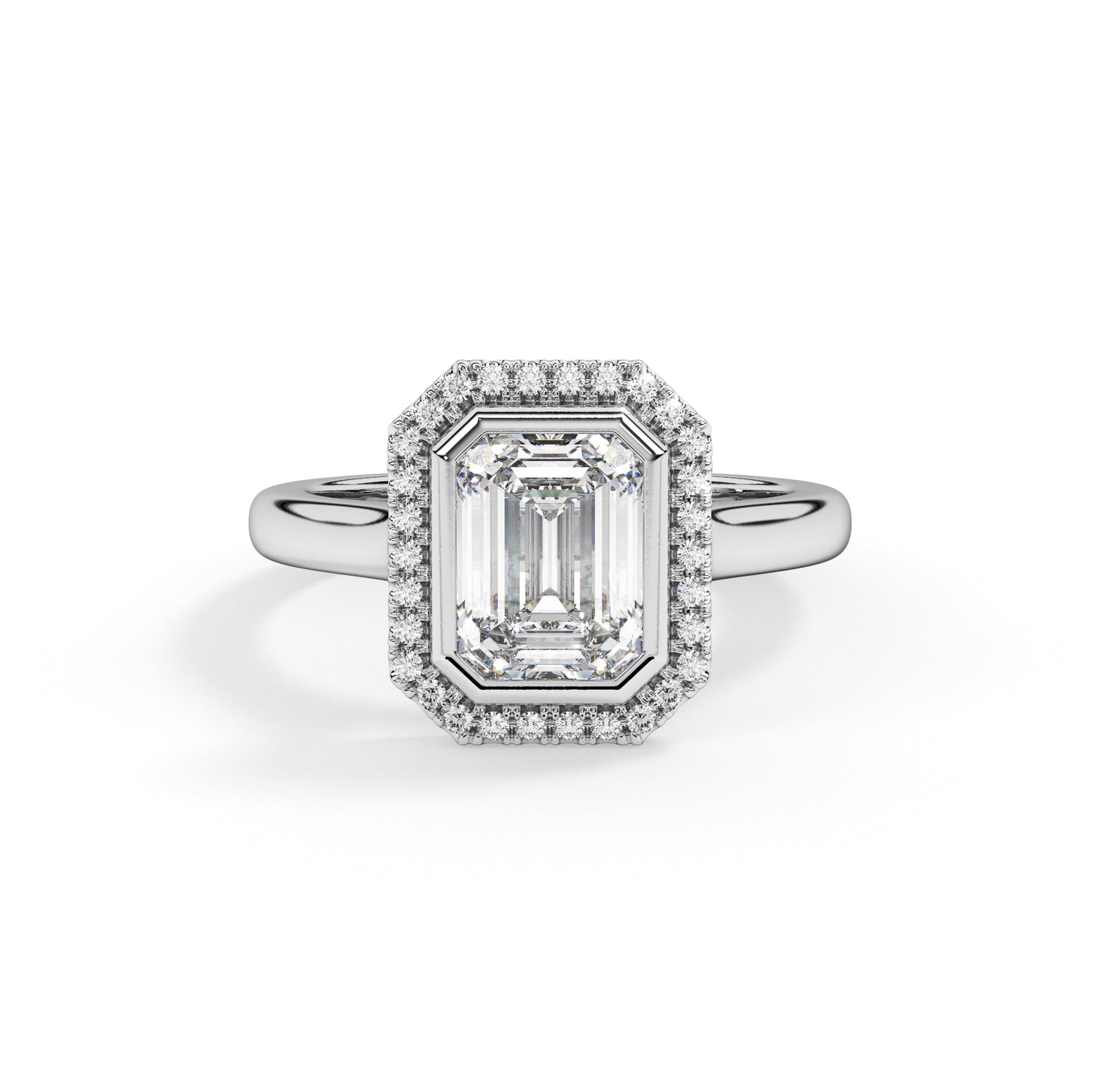 A modern halo engagement ring named after the Greek goddess of harmony. This stunning piece combines timeless elegance with contemporary flair, featuring a central stone encircled by a halo of smaller stones. With its harmonious design and radiant allure, Harmonia symbolizes everlasting love and unity.