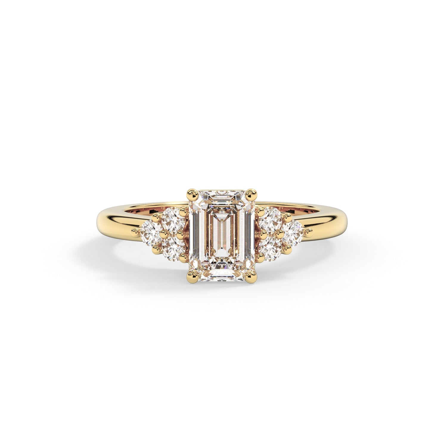 A traditional clawed trilogy ring named after the Greek goddess of the rainbow. Three stunning stones symbolize past, present, and future, delicately cradled in classic claw settings. Inspired by the goddess's grace, Iris exudes timeless elegance and mythic allure, ideal for celebrating everlasting love.