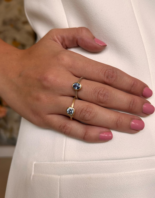 Denim Blue Sapphire and Diamond Asymmetric Ring