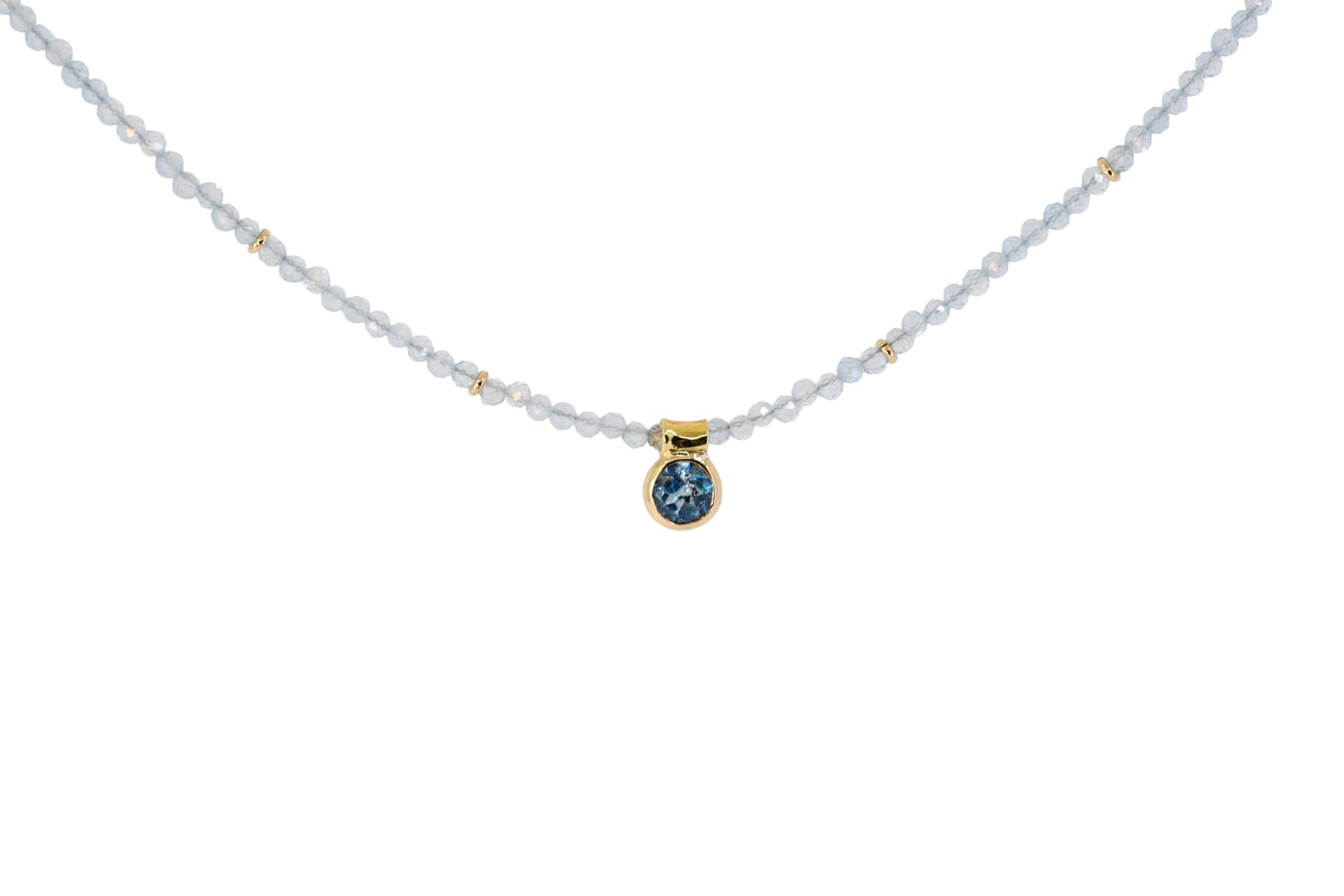 A string of delicate pale blue aquamarines is finished with a 9ct yellow gold accent, making this necklace a fresh and timeless addition to any collection. Handcrafted for comfort and versatility. Lightweight and easy to wear. Ideal for gifting or everyday style.
