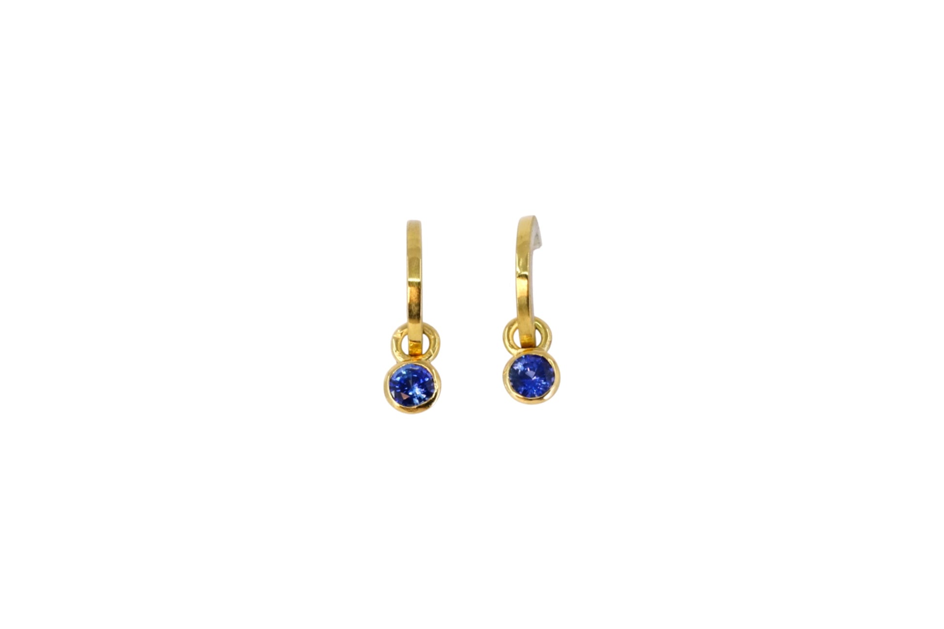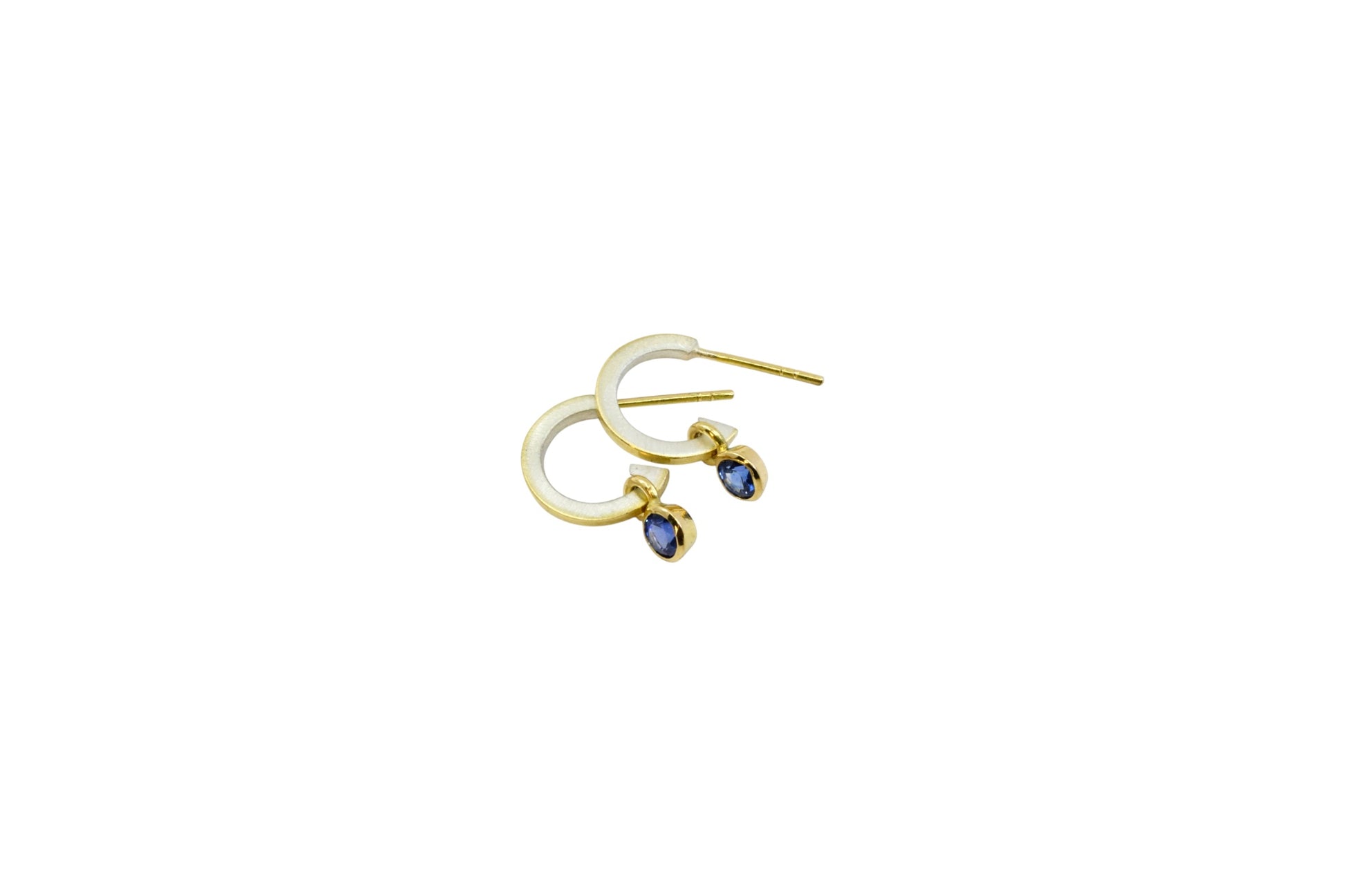 Stunning bright blue sapphires on our beautiful gold lined hoops