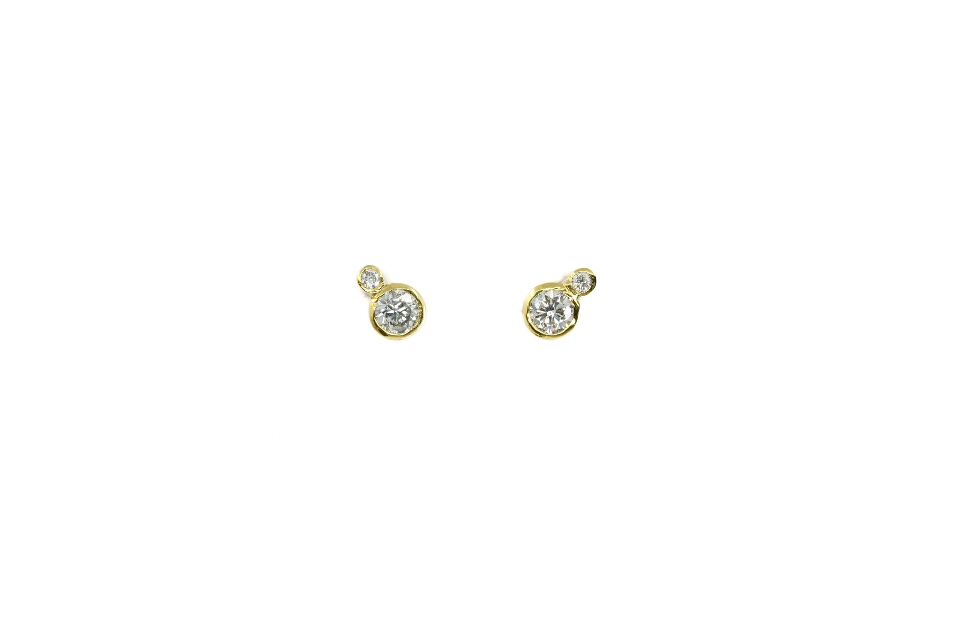 Experience the unique elegance of our Diamond Asymmetric Studs. Each stud features two diamonds set asymmetrically, one big and one small, in 18ct yellow gold. Perfect for those who appreciate distinctive style.