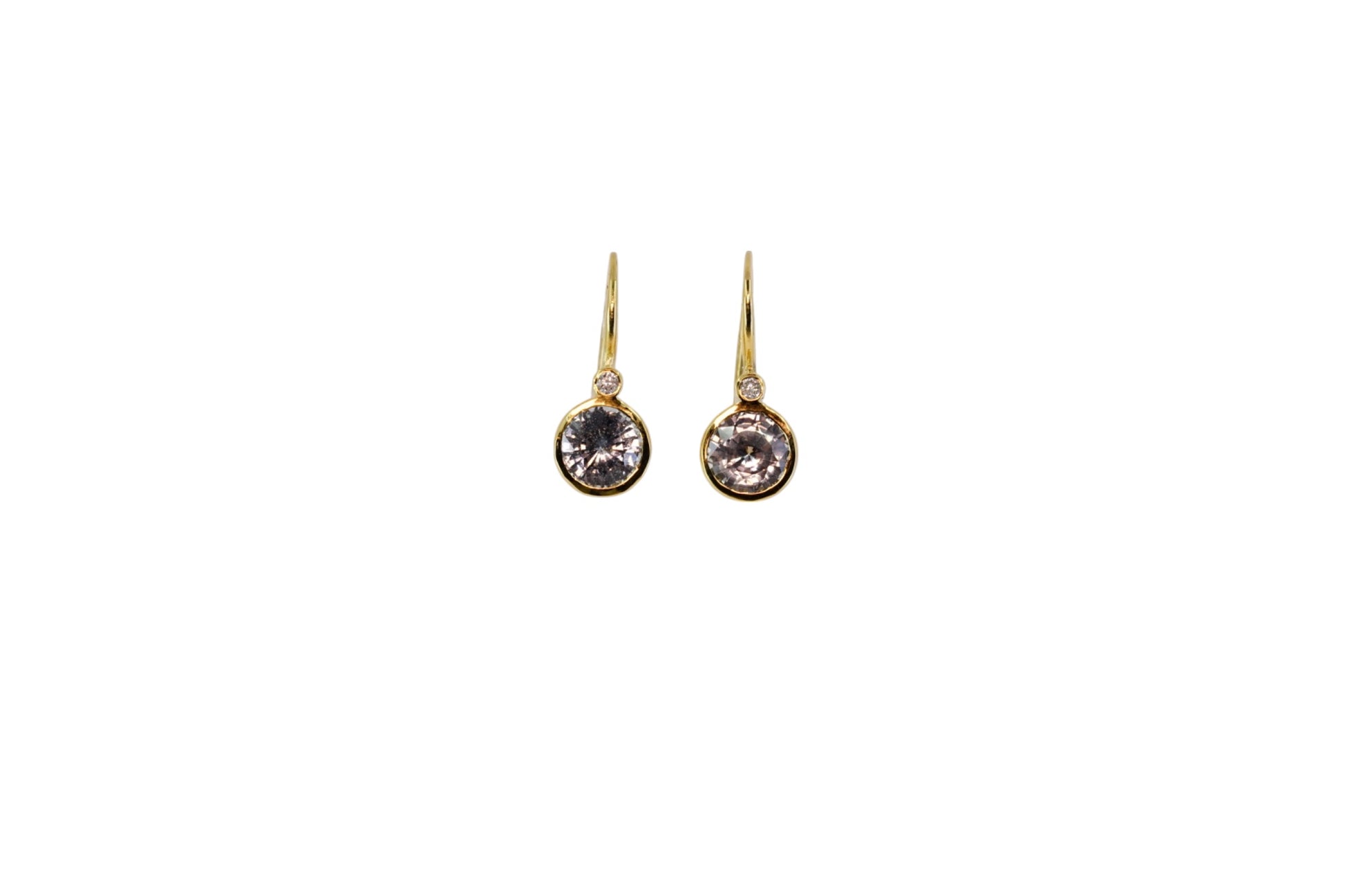 Grey sapphires set in 18ct yellow gold with diamonds on pretty hooks.