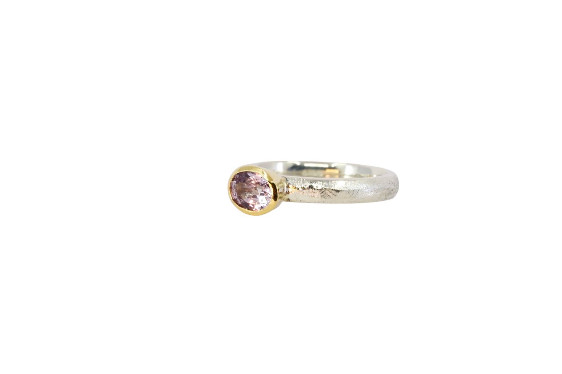 A stunning lilac sapphire is set in 18ct yellow gold on a sterling silver band, capturing the delicate beauty of this rare gemstone. Soft colour and expert craftsmanship combine in a ring thats both romantic and refined.