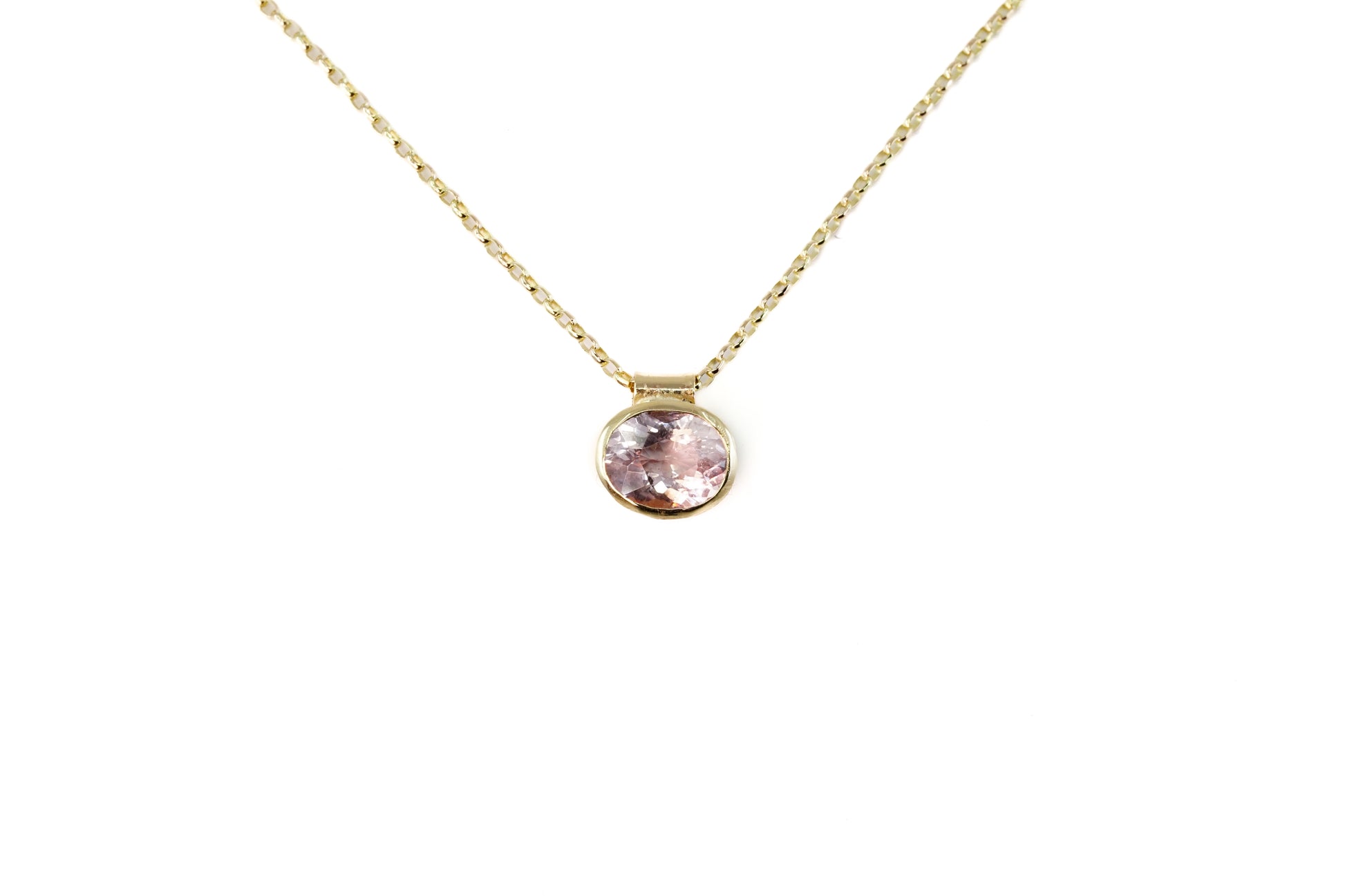 Embrace the delicate allure of our Morganite Pendant. An oval pale pink morganite is beautifully set in 9ct gold, hanging on a 9ct gold belcher chain. This pendant adds a touch of elegance and sophistication, ideal for those who appreciate the soft hues of morganite.