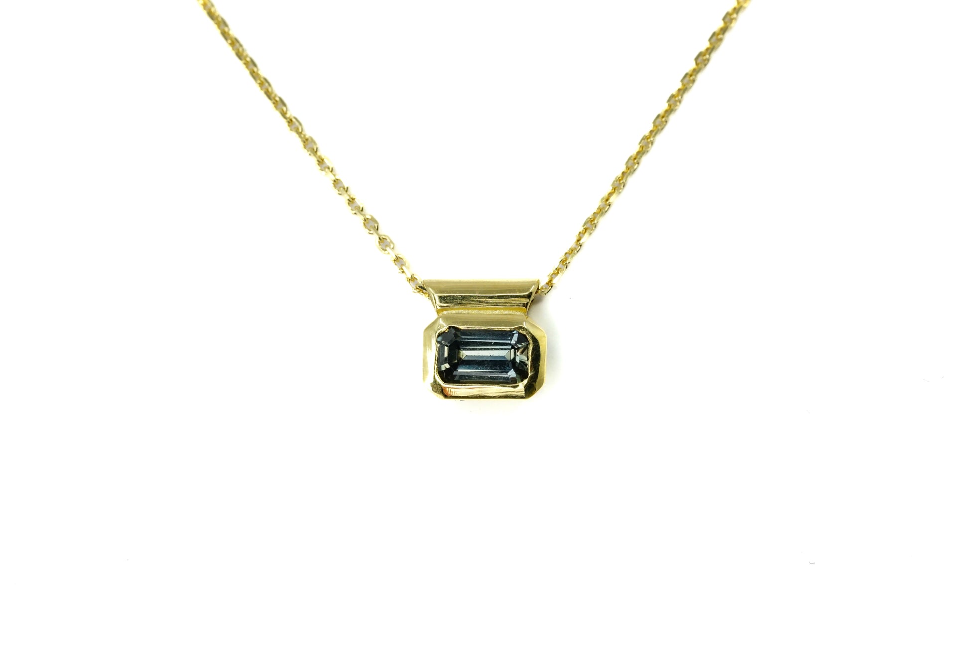 Teal Green Emerald Cut Sapphire Pendant with 18ct Gold Chain