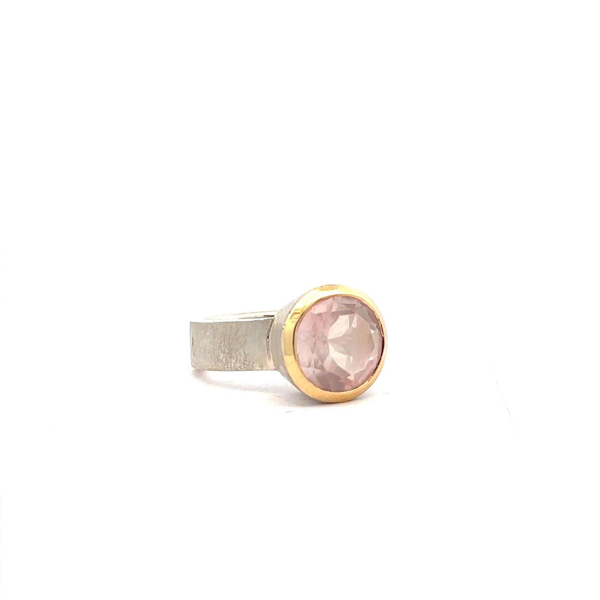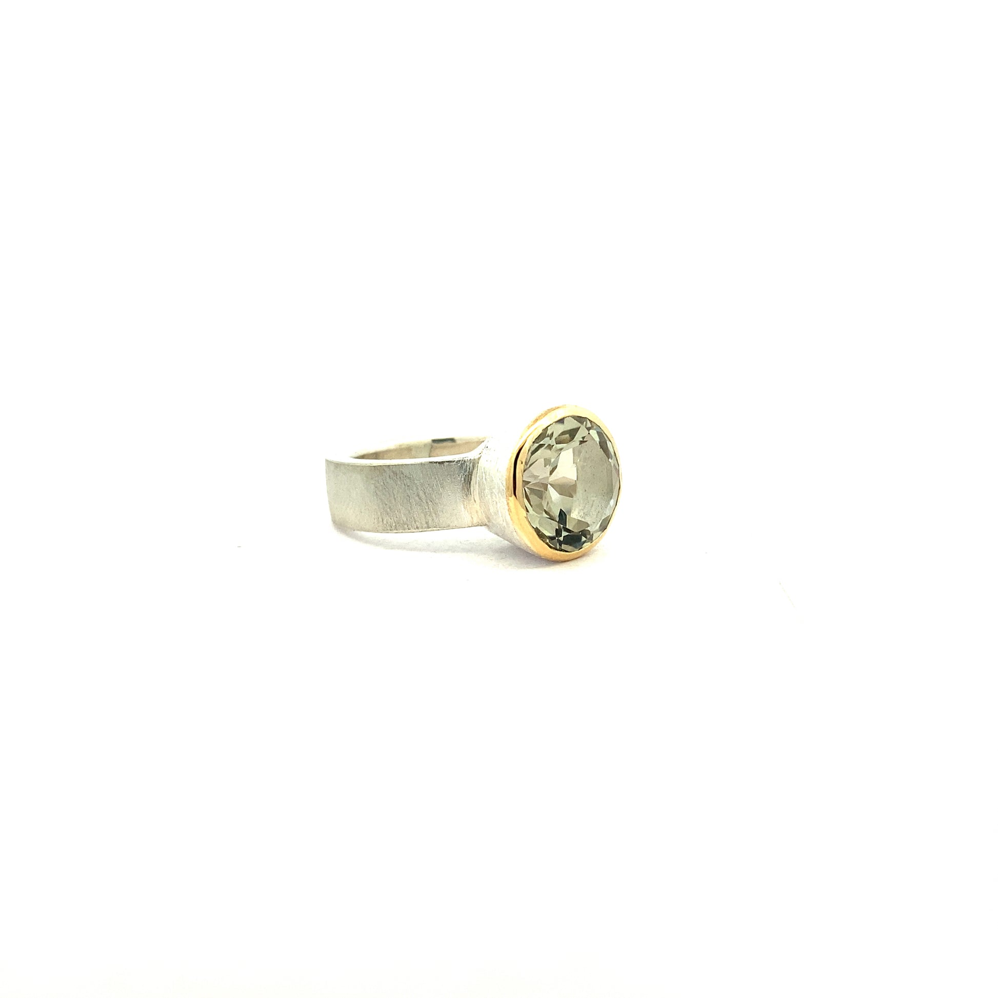 The Brigitte Ring is not your typical gemstone ring, cool tones are magically melted together using 18ct yellow gold. The gold highlights a sense of height and sophistication, proudly presenting your Quartz or Topaz gem in its grip. This sterling silver ring has the ability to morph itself to compliment any aesthetic, from relaxed natural linens to more serious and structured looks.